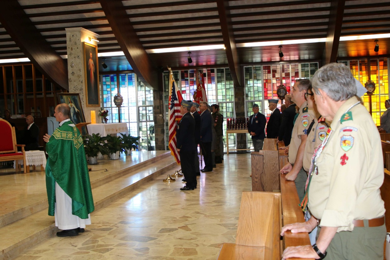 z flagami i mundurami - w której uczestniczyli polscy harcerze - z nabożeństwem